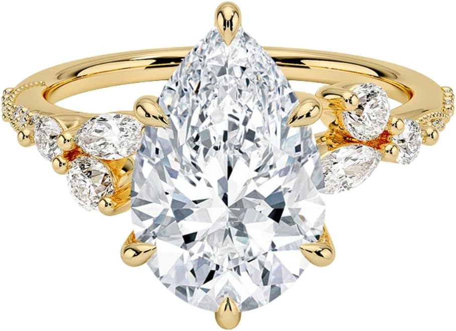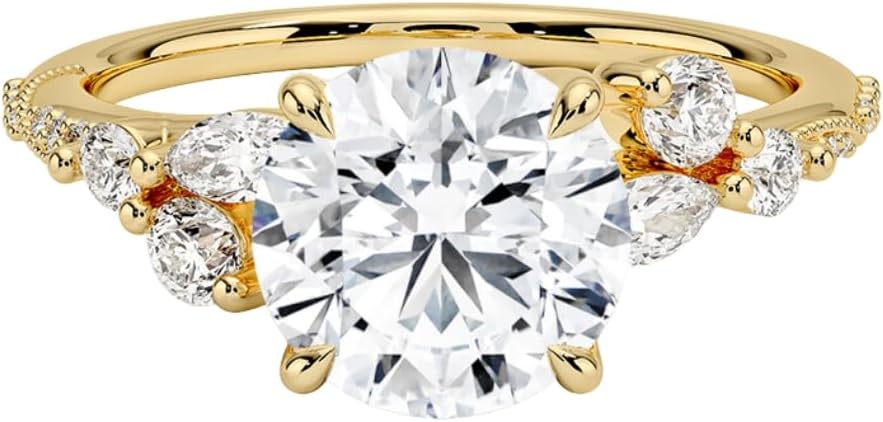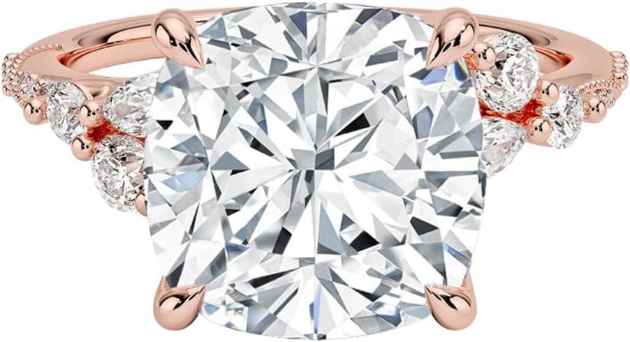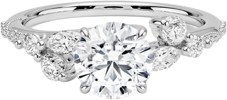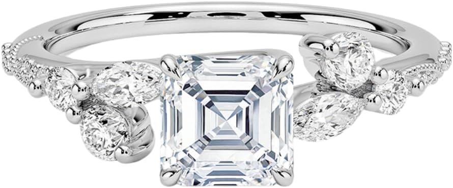 • Stone Details : Main Stone: Moissanite, Main Stone shape : Asscher Cut, Cushion Cut, Emerald Cut, Marquise Cut, Oval Cut, Pear Cut, Princess Cut, Radiant Cut, Round Cut, Main Stone Total Weight: 1 - 5 Approx., Main Stone Color: Colorless, Main Stone Clarity: VVS, Main Stone Luster: Excellent.
