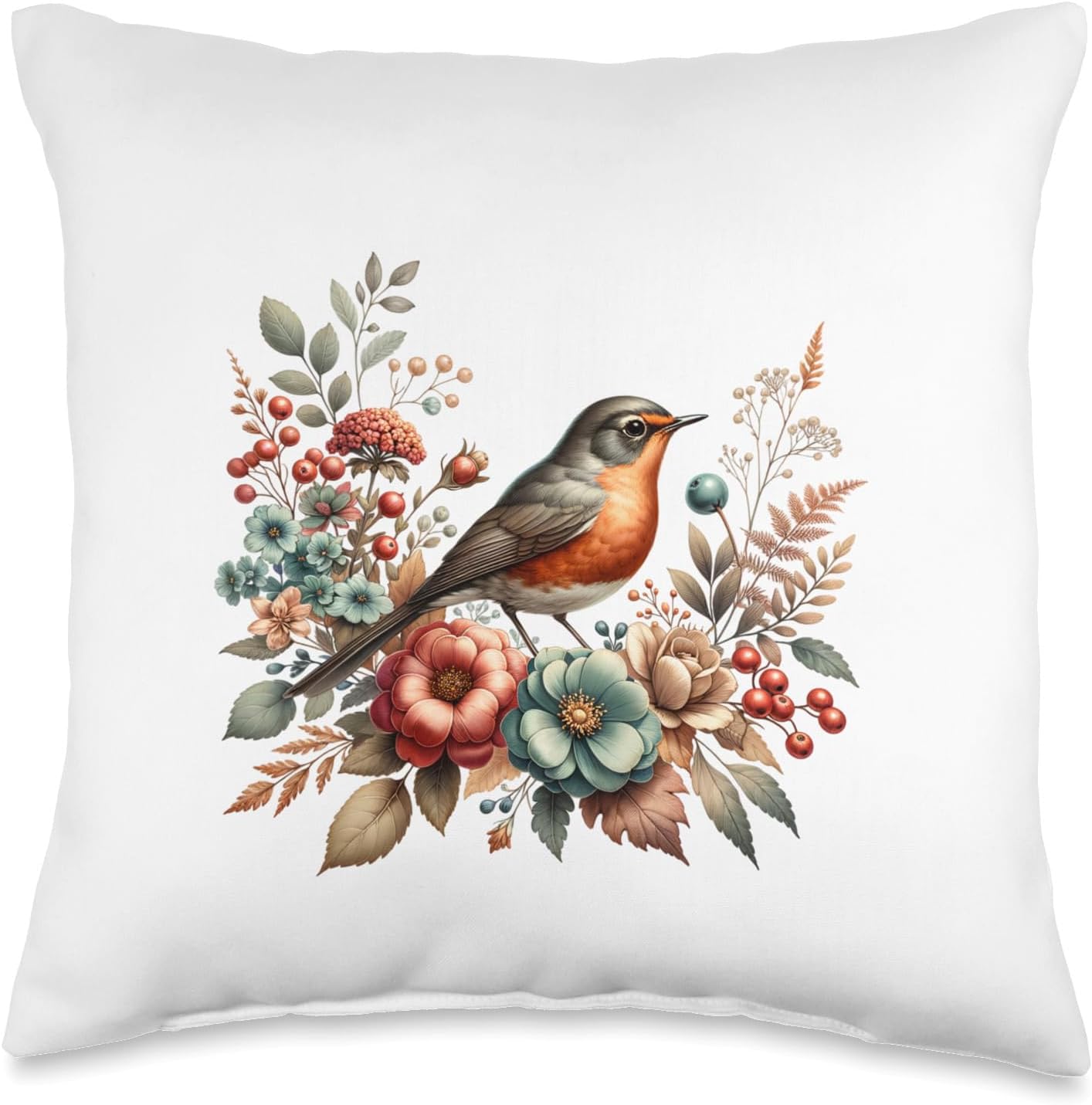| Item Type Name | American Robin Vintage Floral Autumn Bird Throw Pillow |