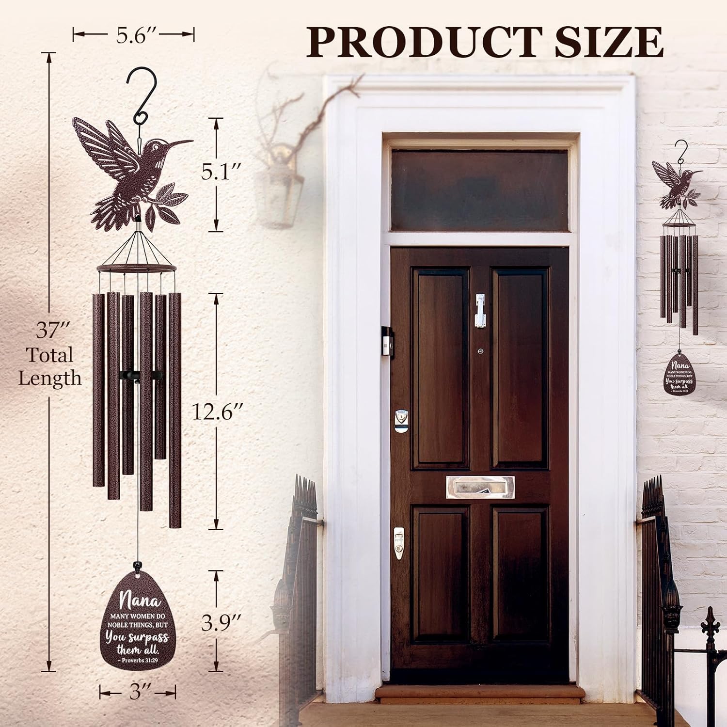 Best Nana Gifts - 37'' Bronze Nana Wind Chimes, Meaningful Nana Mothers Day Gifts from Grandkids