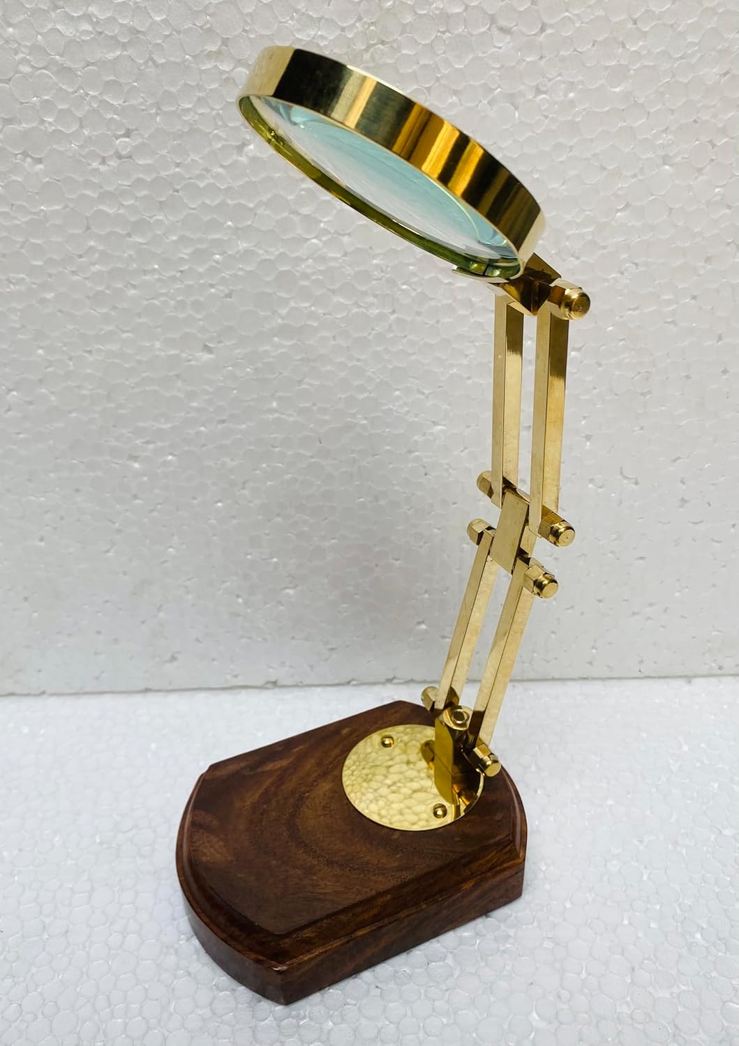Height 12'' diameter of lens 3 inch After Fold Height = 4 INCH Base Size = 5'' x 4'' Beautiful adjustable table,desktop magnifying glass up for sale. Engraved as "Makers To the Queen London". Premium Quality!!!!!
