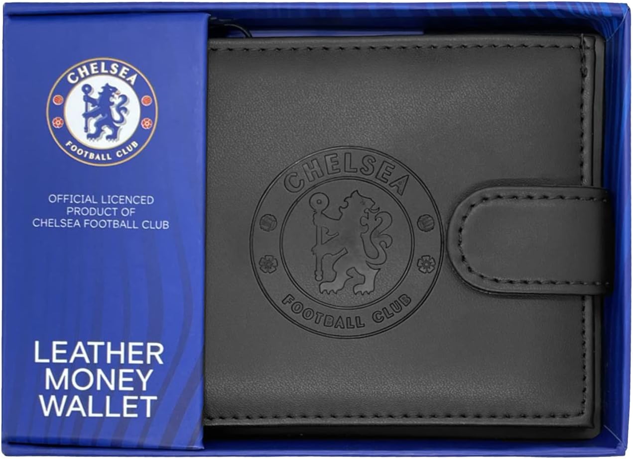 The Chelsea crest embossed leather wallet is a perfect present for any dedicated football fan. A fantastic way to show their allegiance to their team as well as a great practical gift. The wallet has Department for cards clear window for ID notes and is made from geniune leather with the teams crest embossed on the front with a clip on button to make sure your cash is safe and secure and comes supplied in a elegant black gift presentation box bearing the Chelsea fc club crest. This is an official Chelsea football club merchandise