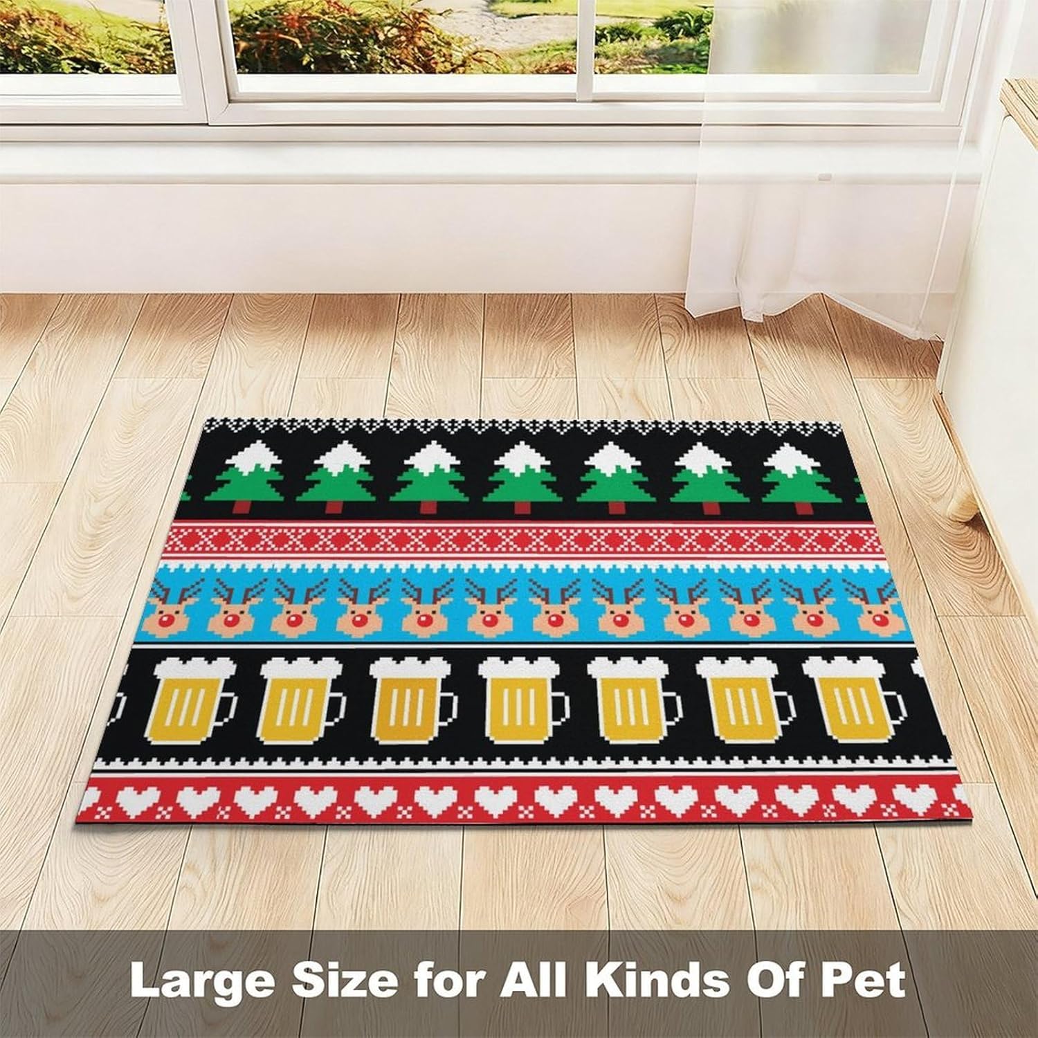 This pet mat adds a stylish touch to your room. Its cute design and modern aesthetic effortlessly enhance the overall look of your space. Whether you place it in the kitchen, living room, or any other area, it adds a decorative element while fulfilling its intended purpose.
