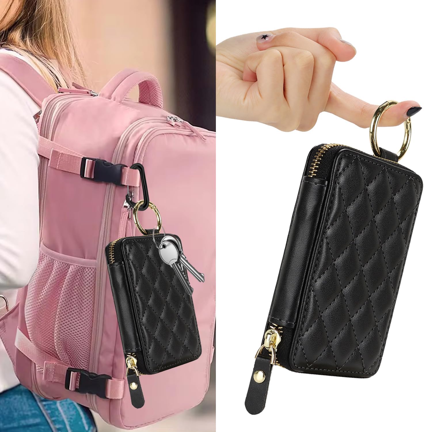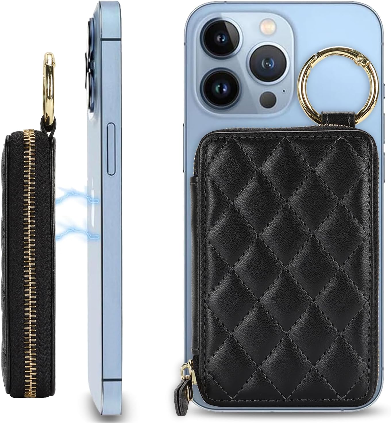 SunYoo Compatible with MagSafe Wallet,Magnetic Phone Wallet Card Holder for iPhone 17/16 Pro Max/15 Pro/14 Plus/13/12 Series,PU Leather Zipper Pocket Adjustable Stand-Black