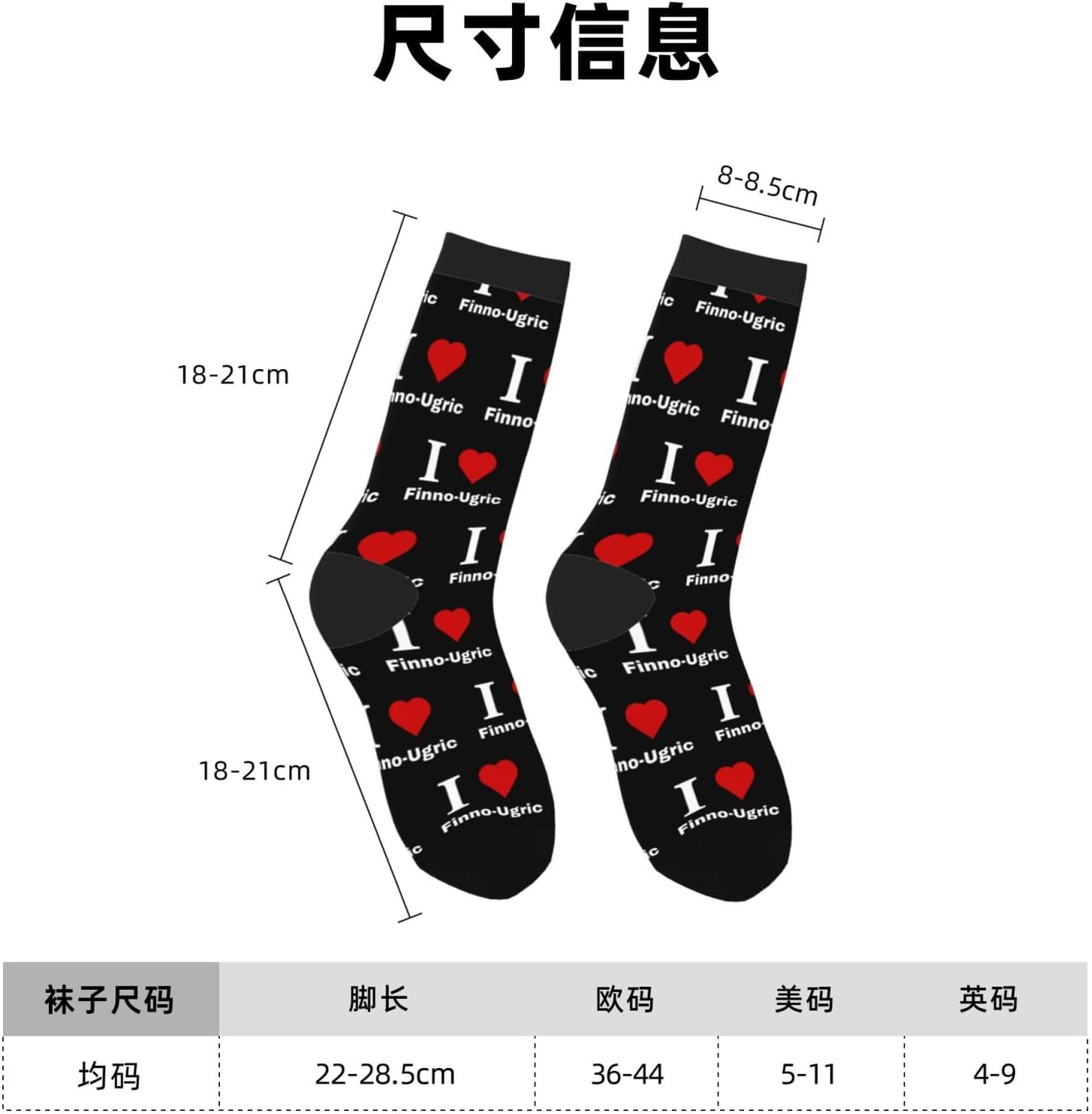 SOCKS FOR ALL SEASONS - Our I love Finno-Ugric Socks Come In A Variety Of Styles Designed To Go With Every Outfit. Our Socks Are Made From High Quality Materials That Are Both Comfortable And Stylish. One Size Fits All.DURABLE - Our Athletic Socks Are Comfortable And Breathable For Your Active Lifestyle. These Athletic Socks Are Made Of 97% Polyester And 3% Spandex To Ensure Durability.COMFORTABLE TO WEAR - The Fit Is Designed To Keep You Comfortable Both Indoors And Outdoors. Wear Our Athletic Socks When You Are Relaxing At Home Or When You Are Out And About! With Our Socks, You Can Work Out, Dance And Move Freely In Comfort!MID CALF RUNNING SOCKS - Our Socks Are Moisture-Wicking And Breathable, Keeping You Cool And Dry All Day Long. Not Easy To Pilling. Stretchy And No Compression On Your Feet. Whether You Are Going To Work Or Running, Our Casual Athletic Socks Are Perfect For Any Occasion. Breathable Material Is Suitable For All Seasons, A Comfortable Gift For You And Your Family.CUSTOMER SERVICE - Our Sports Socks Are Uniquely Designed And You Can Wear Them For Work, Running, Hiking, Biking, Fitness, Walking And Everyday Wear. You Can Also Purchase These Sports Socks As Gifts. If You Have Any Questions, Please Feel Free To Contact Us! We Will Reply And Solve Your Problem Within 24 Hours!