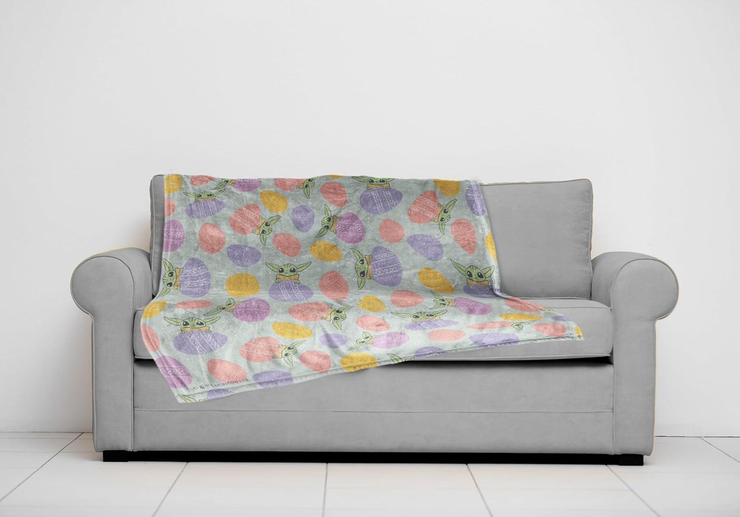 Make downtime feel motivating with the Jay Franco The Mandalorian Plush Throw Blanket! Featuring a charming all-over Easter Spring pattern of Grogu (The Child) surrounded by colorful Easter eggs, this design blends fan-favorite character appeal with festive seasonal fun. Set against a soft neutral background, the blanket showcases Grogu peeking out from behind beautifully decorated eggs in pastel shades of purple, yellow, orange, and pink. Each egg features unique patterns and textures, creating a playful and visually engaging design that repeats across the entire blanket. Sized at 50” x 60” and crafted from ultra-soft 100% brushed polyester, it’s cozy, lightweight, and breathable—perfect for year-round comfort. Whether lounging on the couch, layering on a bed, or watching TV, this throw delivers style, warmth, and inspiration. Machine washable and durable, it keeps its softness and vivid design wash after wash. A winning gift for fans—perfect for birthdays, holidays, or back-to-school!