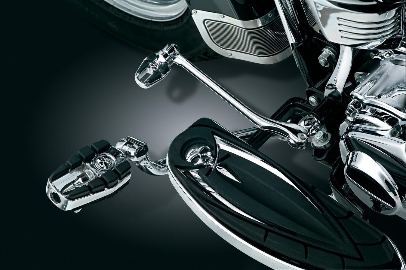 The Kuryakyn 4414 Zombie shift peg is made with plenty of beautiful shinny chrome. Features durable rubber pads with ominous imbedded Zombie skull. These will show your mischievous ways in a new light. Add them alone or with other Zombie accessories (sold separately) for a more cohesive look. Includes (1) Chrome Zombie shift peg, (1) 5/16-24 x 1 hex head cap screw; suggested tools for installation (not Included): large pliers, 1/2" wrench and a towel. The Kuryakyn 4414 Zombie shift peg is compatible with all Harley-Davidson shift levers: (Excludes Sportsters with Mid Controls).