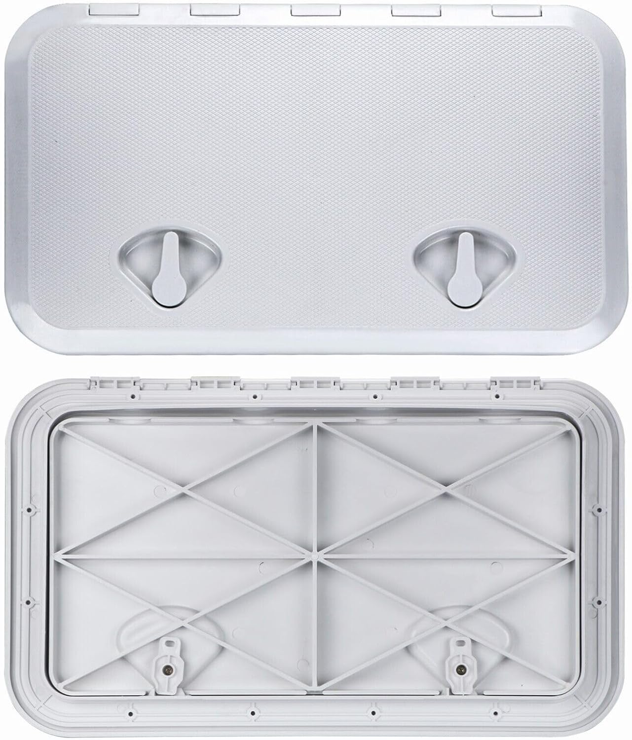 Description1) Solid ABS material. Weather-tight and rectangle deck plates.Ultraviolet resistant2) This black deck plate is suitable for all kinds of Boats/Yachts. Ideal for interior and exterior applications3) Smonth surface,reinforced design with 180 degree opening lid.Rubber seal ensures4) Outside Length: 24" (606mm) ;Inside Length:20.6”(524mm),Inside Width:13”(353mm)5) Deck mount. 180 degree opening lid,lock design.Easy to install.Pre-drilled countersunk holes (screws not included)