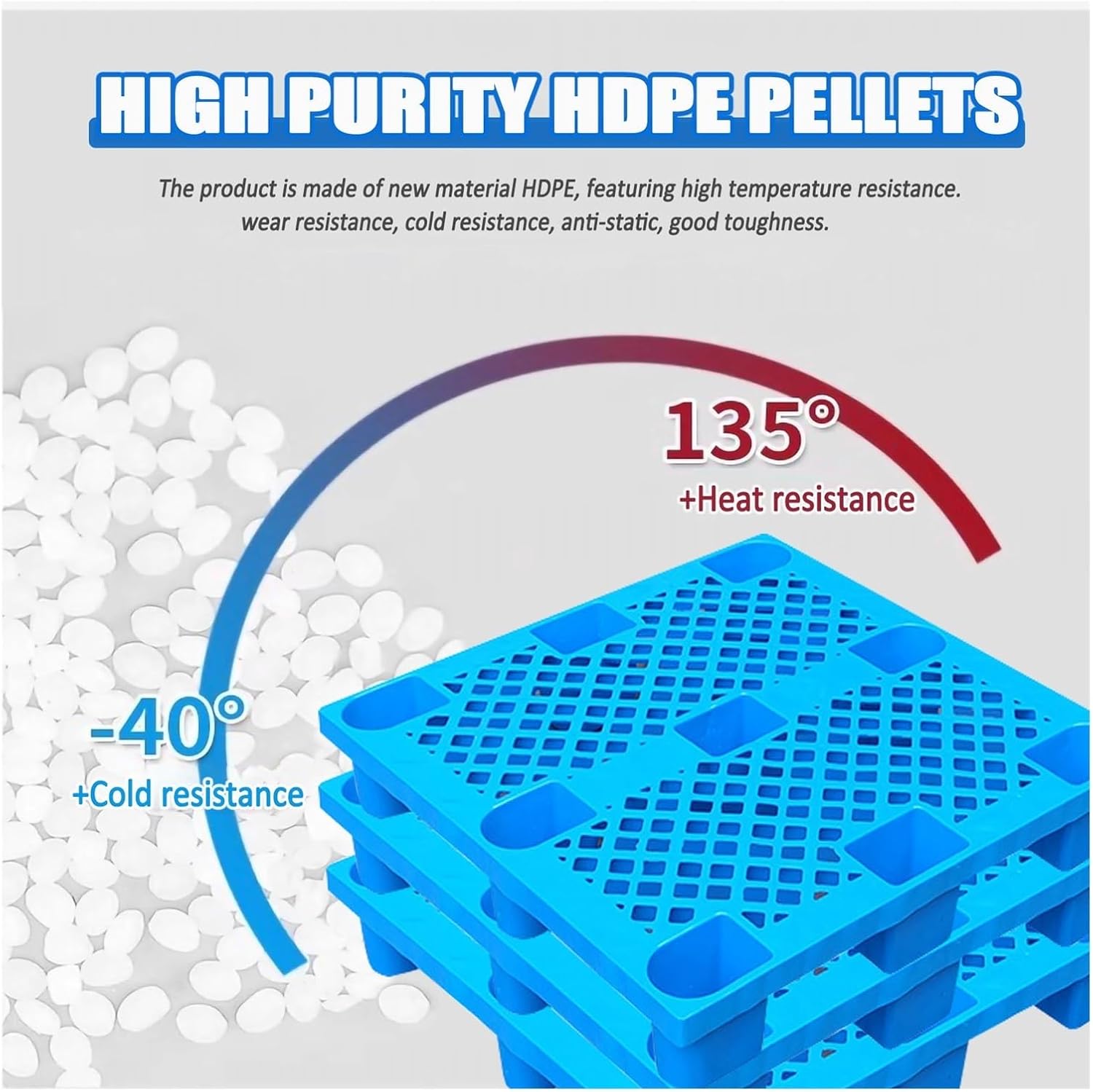 Features:- Our moisture-proof board is made of polyethylene, which has a strong load-bearing capacity and is more stable than wood and metal materials, and can play a variety of roles in life.- Anti-slip treatment on the surface of the Plastic Pallet, the items placed on it will not easily slide down, to protect your valuables- Add a pop of color to your storage units with the basement pallet. The blue color of the pallet will not only brighten up your storeroom but also add an aesthetic appeal to your warehouse, creating an organized and appealing look.Specifications:- Material: New polyethylene material- Color: blue- Dimensions: 35.43 x 35.43 x 5.51 inches/ 90 x 90 x 14cmPackage includes:- 1 x plastic palletsNote:- Please allow slight dimension difference due to different manual measurement. - Due to the difference between different monitors, the picture may not reflect the actual color of the item.- If you have any questions about the products, please feel free to contact us. We will provide you with satisfactory customer service as soon as possible.