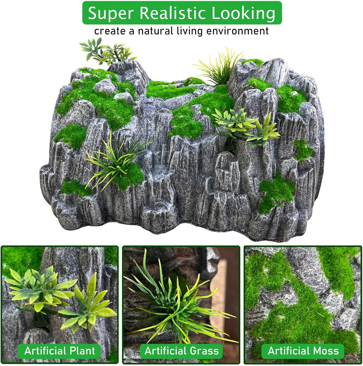 Reptile Rock Hide Cave, Aquarium Habitat Decor Rock Tortoise Hideout for Lizards, Turtles, Reptiles, Amphibians, Fish Make your pets feel like they are in their natural environment with these turtle rocks. The very realistic rock appearance adds a natural touch to your terrarium giving your reptiles comfort and security in its habitat. The bearded dragon hides can also be combined with other decorative items to enhance the overall look of the reptile enclosure.