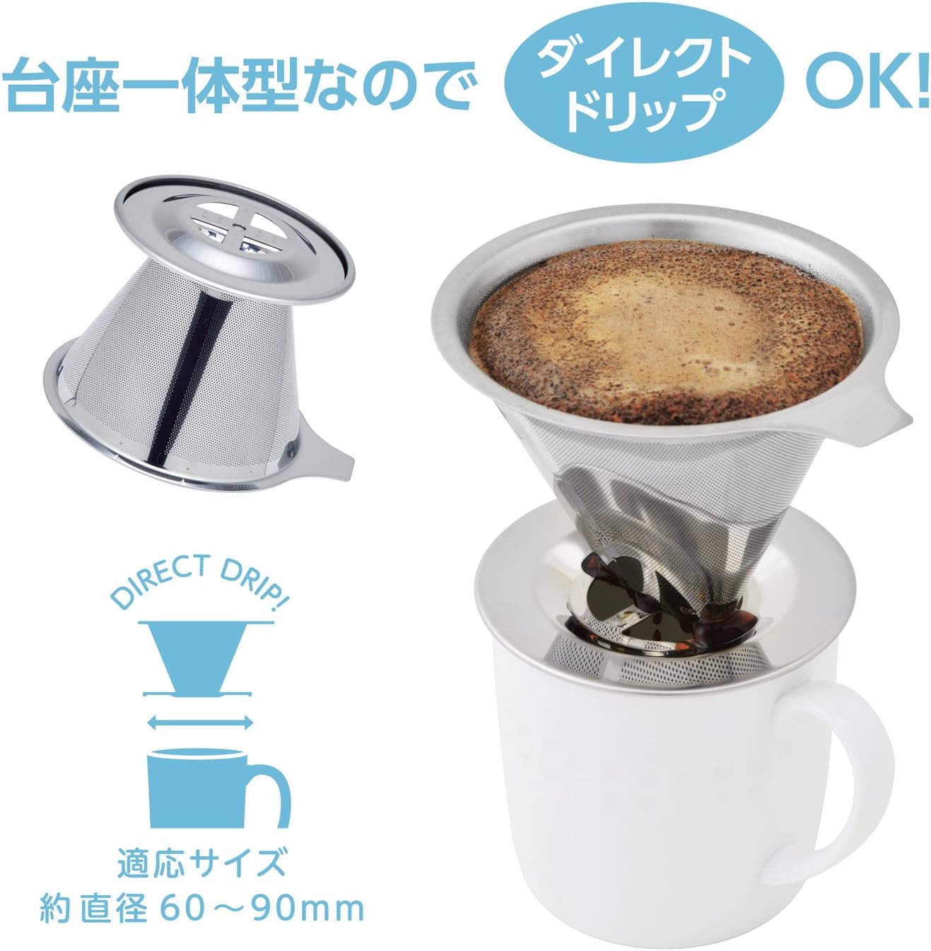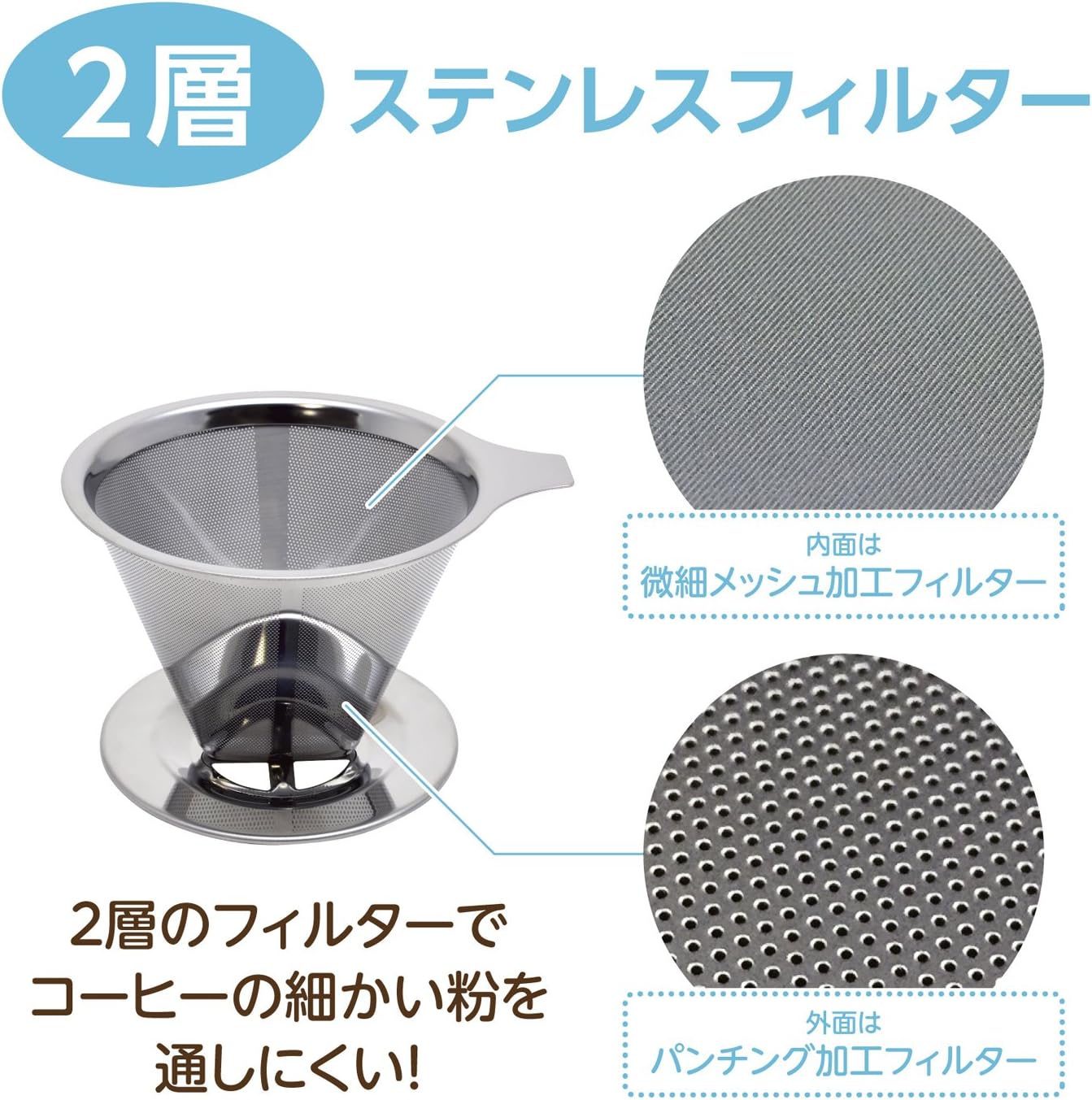 Stainless steel dripper with no paper filter required (for 2 to 4 cups). ● Allows you to extract the original ingredient of coffee. The 2-layer stainless steel filter structure is made with fine mesh processing to prevent fine coffee from passing through. Can be used with paper filters, so you can enjoy the different flavor of your coffee beans. Trapezoid design can be used in conjunction with paper filters. The special brush is designed to prevent the residual of coffee powder and is easy to clean and easy to clean. Stylish stainless steel design gives you a different coffee time. How to use Set 1 dripper and fill coffee powder for a few minutes and lay flat. 2. Pour the entire coffee powder from the center of boiling water slowly and steamed for about 20 seconds. 3. Slowly pour hot water into a circular shape from the center. Adjust the coarseness and amount of coffee powder according to your preference.