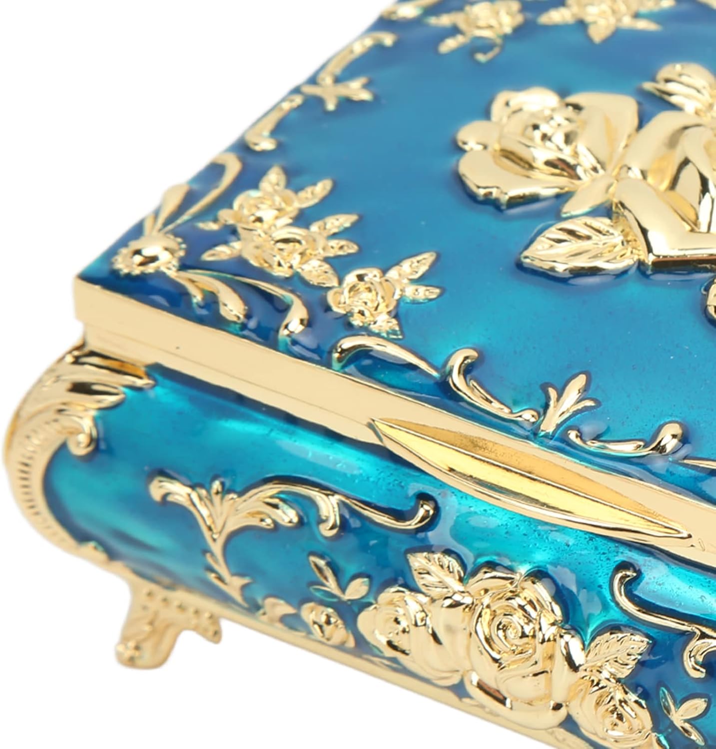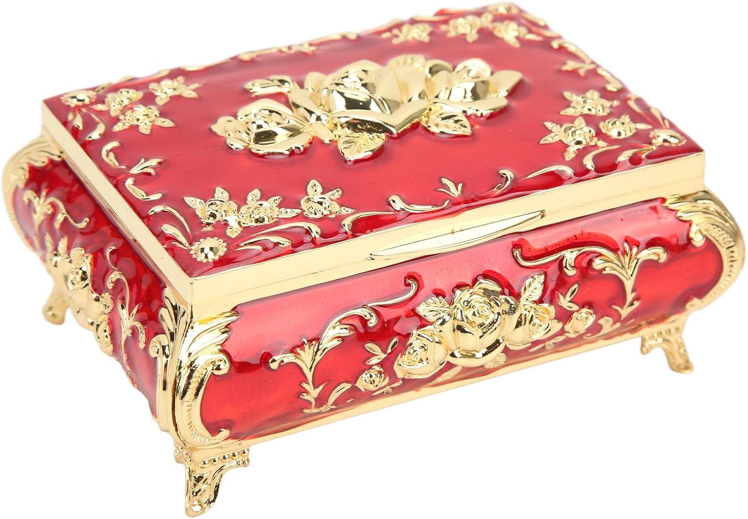Feature: 1. Materials: Made of zinc alloy, this jewelry box is not easy to fade, and can keep its luster for a long time. 2. Rose Relief Design: Featuring a rose embossed design, it has a vintage look and makes a great decoration. 3. Exquisite Craftsmanship: Using exquisite craftsmanship, the color is full, the lines are smoothing, bright and soft, delicate and beautiful. 4. Flannel: The inner flannel the jewelry, avoids scratches, prevents oxidation, and reduces dust. 5. Uses: Can be used to store jewelry, can also be used as a desktop decoration, can be used as a friends, lovers. Specification: Item Type: Vintage Jewelry Box Product Material: Zinc Alloy + Flannel Product Use: Jewelry Collection, Desktop Decoration Storage, Etc. Package List: 1 x Vintage Jewelry Box