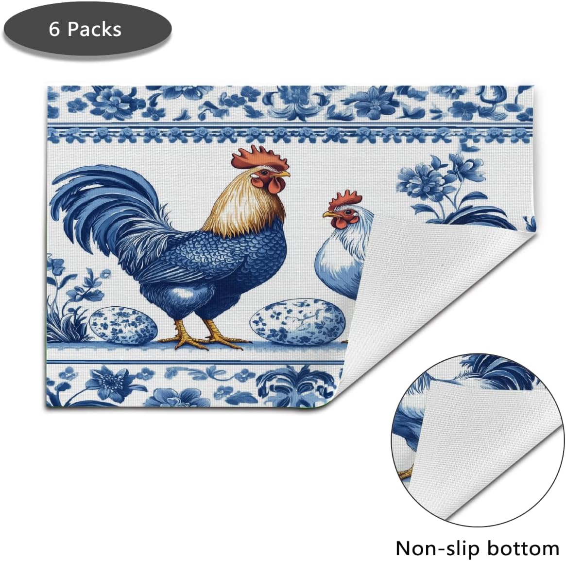 Washable Wipeable Vinyl Placemats Set of 1/4/6 for Dining TablesFEATURES- Made of high quality vinyl PVC material, durable to used- Eagerly cut craftsmanship, the edges do not hurt hands- Lunch placemats print with funny patterns to meet your personalized style- Each waterproof placemats measures 18x12inch, fitting most standard dining tables and place settings.PRACTICALIndoor place mats protect your table from scratches, also can effectively prevent oil stains from splashing on the table top. The oil stains can be easily cleaned with warm water.STYLISHHome decor kitchen and dining wipeable placemats decorate your tabletop or entryway tables well and help add a festive or party vibe. Can be used for any occasion indoors and outdoors, perfect for casual weeknight dinners, formal holiday meals, garden barbecues, patios, parties, events, they’re lightweight enough to take on the go.They’re more than just table protectors, they’re a statement piece that ties your entire dining experience together.Make you and your family enjoy the visual feast during dinner time!
