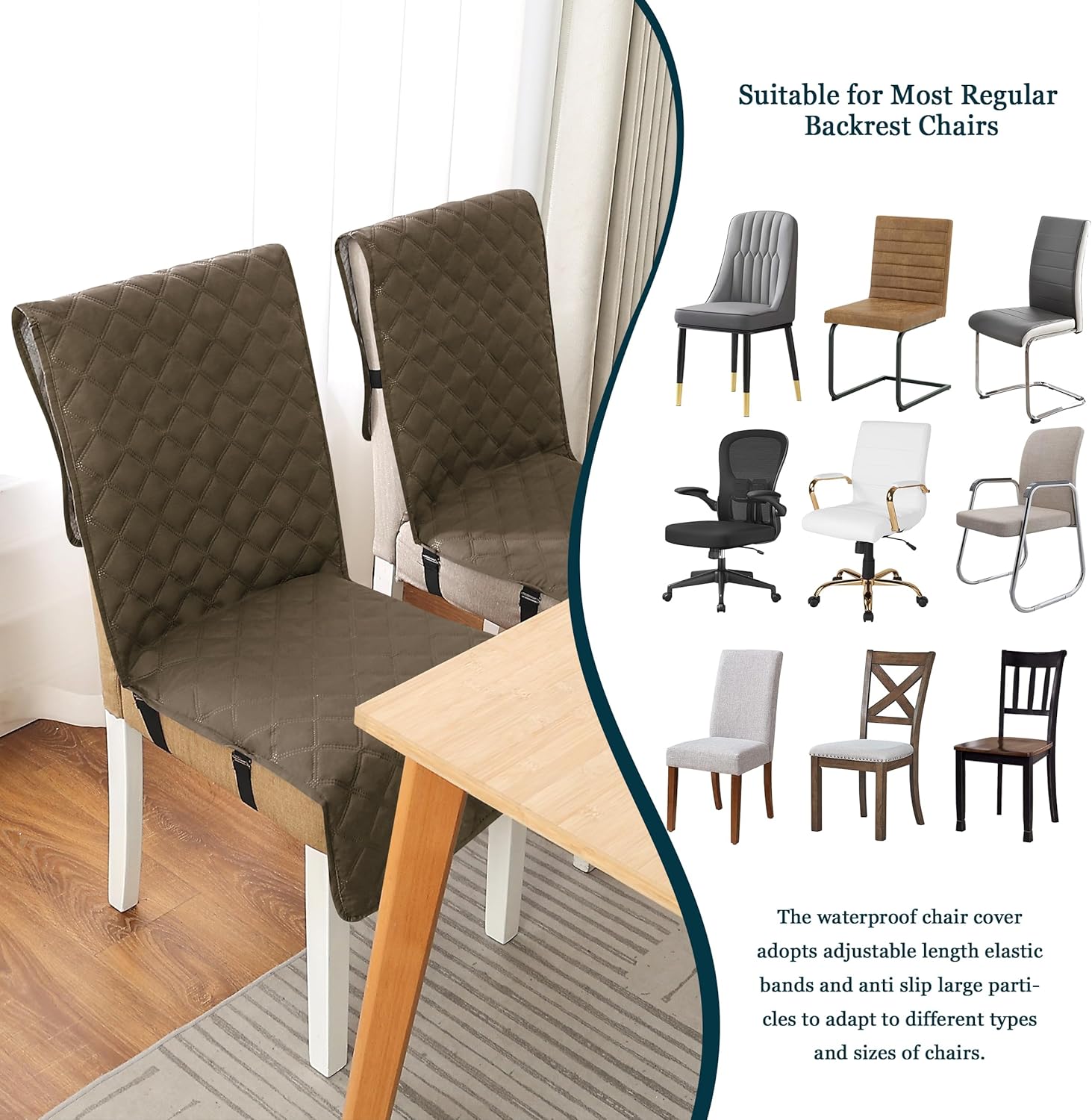 Yonus Waterproof Dining Chair Cover Office Chair Cover Water Resistant Dining Room Chair Cover Kitchen Chair Slipcover Computer Chair Cover with Anti-Slip Buckle (Camel, 1PCS)