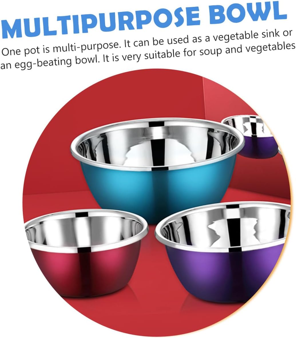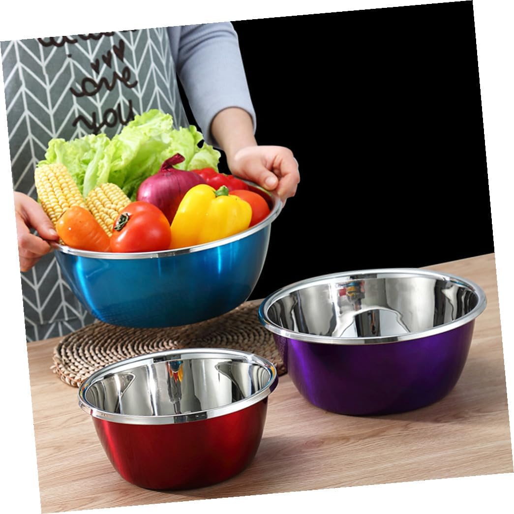 Package Include 3 x stainless steel mixing bowl sets Features -Size L: About 28.00X28.00X11.00cm/11.00X11.00X4.32in. -Size : About 24.00X24.00X10.00cm/9.44X9.44X3.93in. -Size S: About 20.00X20.00X9.00cm/7.87X7.87X3.54in. -Product Info:Seasoning cylinder set -Material: Stainless steel. - Perfect for gifting to loved ones on Christmas, holidays, and other special occasions kitchen storage containers. - Great for whisking and beating and excellent for mixing batters, tossing salads, marinating and storing large mixing bowl. - The multipurpose food serving bowl also can be used in bakery as a mixing bowl stainless steel bowls. - Manufactured with stainless steel material, and practical enough to use. - Thickened design, the different capacity design use for different application, can be used to wash vegetables or fruits mixing bowls metal.Goods Descriptionsalad mixing bowl Are you still looking for practical mixing bowls? Smooth surface and fine craftsmanship, which can save your time and labor.mixing bowls for kitchen Made of stainless steel, with wide flat rim for smooth pouring, and a flat base for stability.kitchen bowls Perfect for any kitchen.stainless steel container A good gift for friends, families and co-workers, etc
