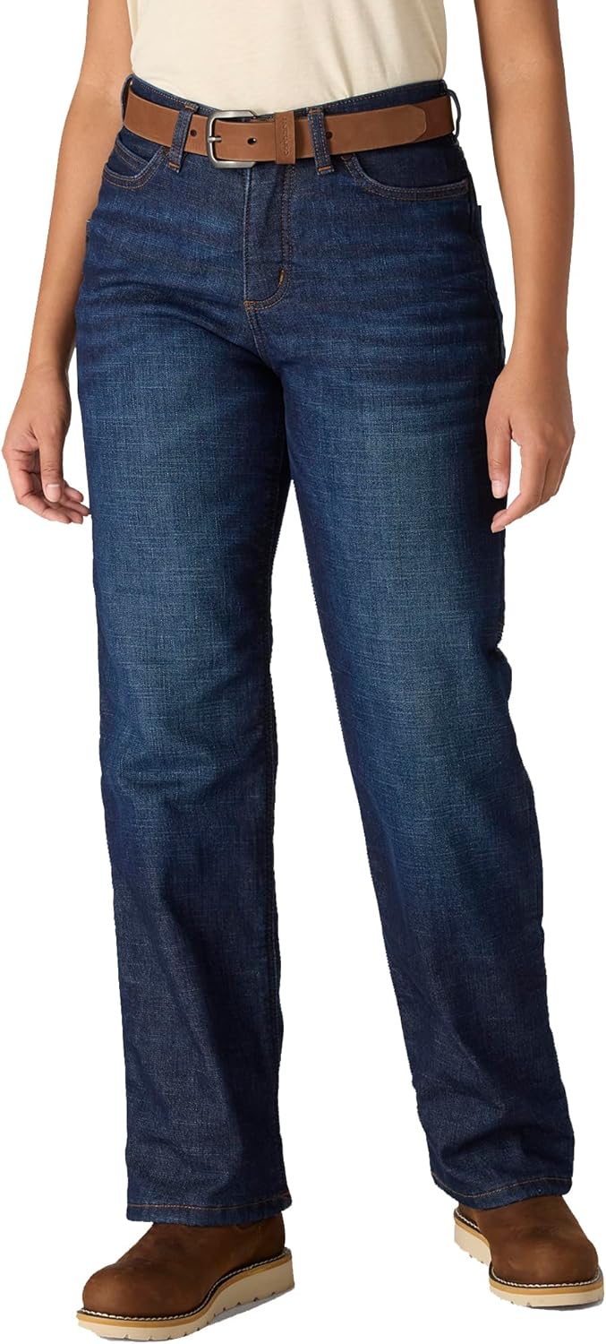 10.5-ounce, 74% cotton / 24% polyester / 2% elastaneFleece liningBuilt to move with Rugged Flex® stretch technologyLoose fit: Mid-rise sits just below the waist, with a roomy fit in the seat and thigh, and a loose leg openingDurable stretch denim moves, bends, and bounces right backFlexible waistbandMultiple tool and utility pocketsStretchy, sewn-in front pockets stay in place and add supportImported