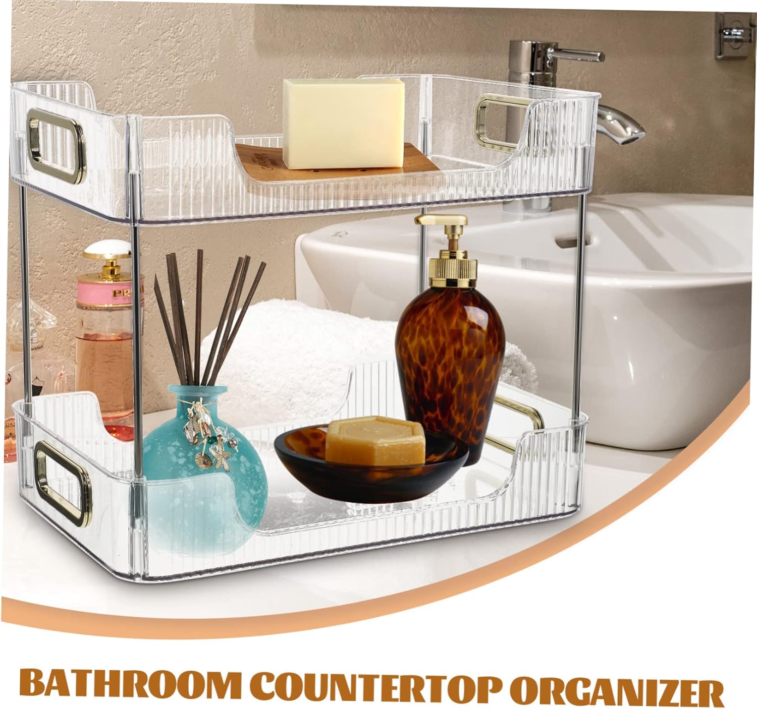 Package List 1 x Bathroom Countertop Organizer Characteristics -Material:PET, stainless steel bathroom organization countertop -Color:Transparent bathroom storage rack -Size:33.50X22.00X26.50cm/13.17X8.65X10.41in bathroom counter organizer - It can be well applied to your bathroom, bedside or any places, helping you to store cosmetics or other sundries bathroom vanity shelf. - Double layers can help you organize different items more easily, and it enables you to find things faster bathroom sink shelf. - Simple structure, strong bearing capacity, it can store and organize more items, bringing you great using feeling bathroom counter shelf organizer. - Nice color and detailed workmanship, can create a new look to your place, also a wonderful decoration countertop cosmetics storage rack. - Mainly made of PET, stainless steel material, this desktop storage shelf is with excellent texture and longer service life tiered storage organizer.Goods Informationtoiletry storage rack The usage is simple and convenient, the details are perfect, practical to use.bathroom counter shelf organizer The bathroom countertop organizer has strong load-bearing capacity and simple style, suitable for a variety of.dresser storage holder Are you looking for the right bathroom countertop organizer? This product is perfect for you