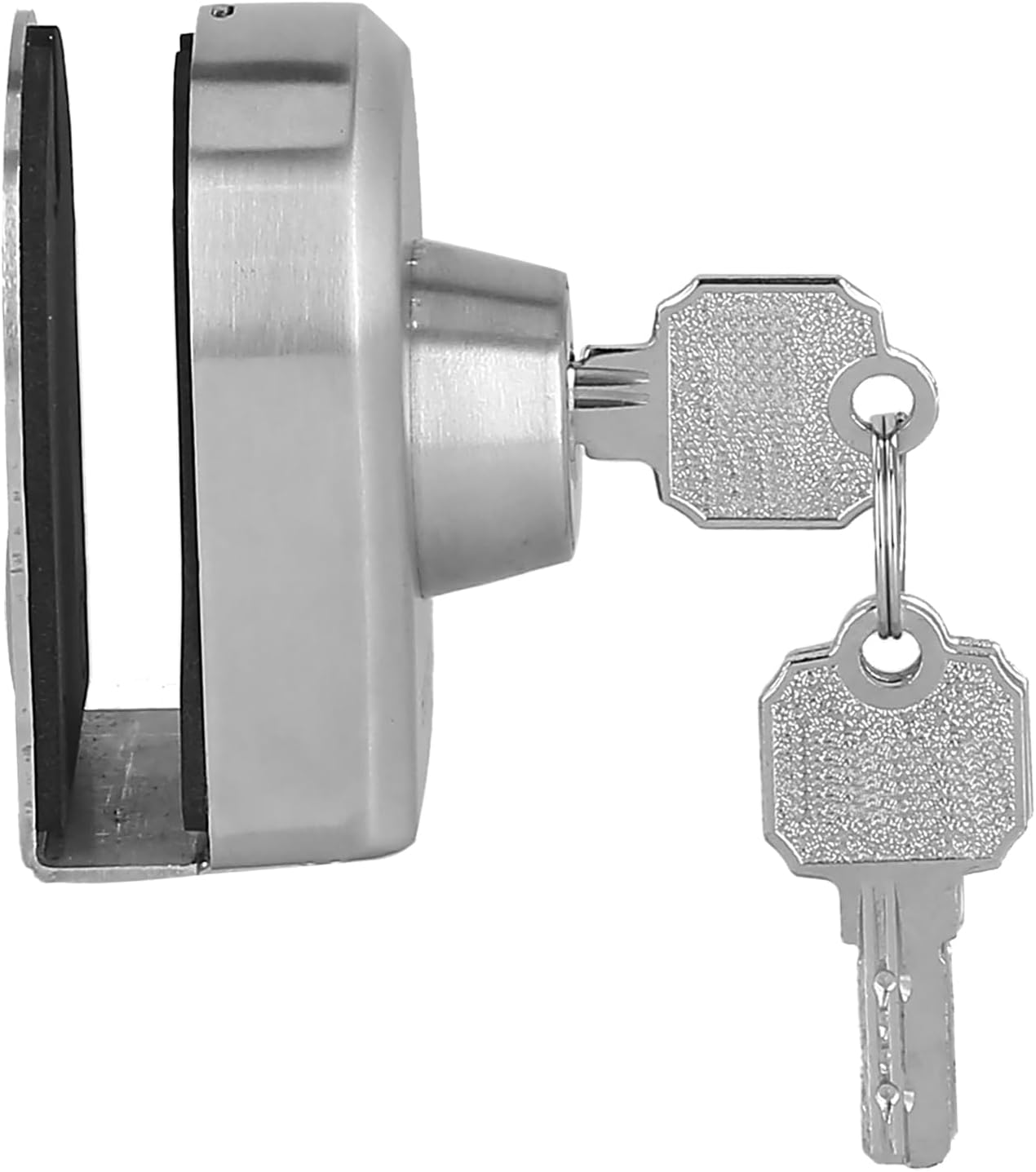 Feature: [Stainless Steel] Stainless steel glass door lock, no rust, no fading, no deformation, oxidation resistance and lasting as new. [Polishing and Polishing] Door lock is finely polished and polished at each position, which will not hurt your hands. [Lock Core Thickening] Frameless Glass Door Locks lock core thickened casting, stable and firm, anti theft and anti pry. [Sponge Pad] Glass Door Lock uses a thick sponge pad, which has high friction and is not easy to fall. [Internal Concealed Screw] Internal concealed screw fixes the lock on the glass door and combines the V shaped online occlusal design to tightly jam the door, which is firm and not easy to fall. Specification: Item Type: Push Sliding Gate Lock Material: Stainless Steel, Zinc Alloy, Sponge Use Range: Single Side Glass Door Suitable for Door Thickness: 10-12MM Type: Single Side Lock Product Size (Length x Width): Approx. 77 x 56mm / 3.0 x 2.2in Package List: 1 x Lock Body1 x Door Rail3 x Keys4 x Screws1 x Hex Wrench1 x User Manual