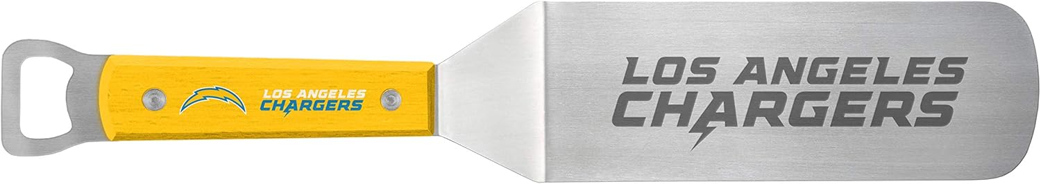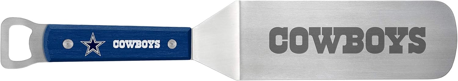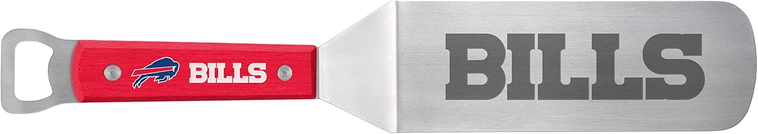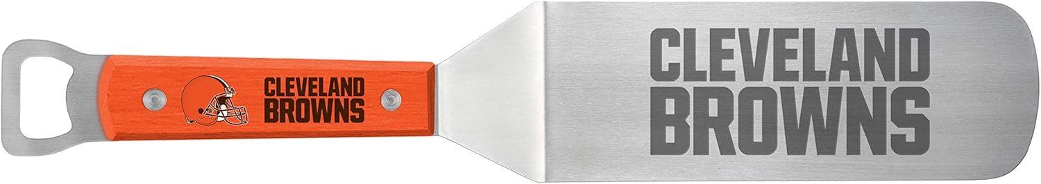 Upgrade your grill game with this BBQ Spatula with a Bottle Opener by The Sports Vault. Constructed of high-quality stainless steel it is perfect to have on hand for any daily kitchen tasks and BBQ needs. It boasts an ergonomic wooden handle with double riveted design which allows for a secure grip, superior comfort and control. Everyone will know what team you root for with the team colored sturdy wooden handle, screen printed team colored logo, team wordmark on handle and laser engraved team wordmark on the spatula. It can be used as a pancake turner, fish turner, griddle spatula, cooking and grill spatula. An additional bonus is that it can easily open any beverage with the heavy duty bottle opener so you don't have to leave the grill unattended!