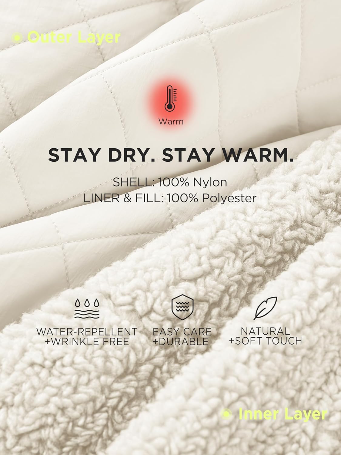 | Fabric Type | SHELL: 100% Nylon; LINER: 100% Polyester; FILL: 100% Polyester |