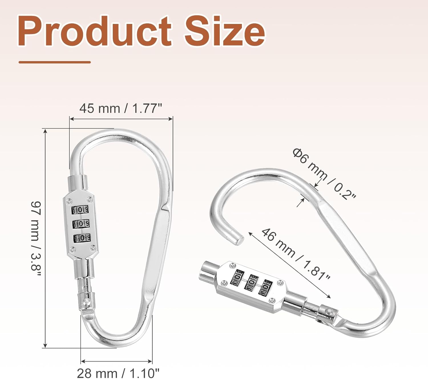 Reasons for selection - The keyless combination lock is made of zinc alloy, which is high in hardness and toughness, lightweight, rust-proof and corrosion-resistant, and has excellent impact resistance. Its smooth, burr-free surface provides a comfortable grip and excellent resistance to deformation, making it resistant to breakage and deformation even after long-term use.Measurement - Diameter: 6 mm / 0.2 inch, Length: 97 mm / 3.8 inch, Height: 46 mm / 1.81 inch, Width: 45 mm / 1.77 inch, 28 mm / 1.10 inch, Package Content: 1Pcs Combination Lock.Suitable for - This combination lock features a D-shaped lock body design with a moderately sized opening, making it highly adaptable. It can securely lock the frames, baskets, and helmets of bicycles, motorcycles, and electric bikes, and can also be used to secure suitcases, toolboxes, lockers, backpacks, mailboxes, and other items, meeting diverse needs in various scenarios.Installation - This keyless D-shaped combination lock is easy to operate, supports thousands of combinations for the three-point combination, and is secure and reliable. The initial combination is 000. To use it, simply turn the front of the lock to the left to unlock it, then press the black spots inside the lock with a target object, and while holding it down, rotate the combination wheel to change the combination.Kind tips - Please confirm the correct size before placing your order.