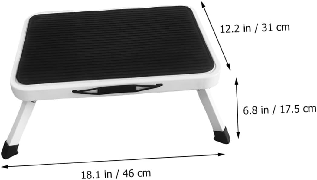 Package List 1 x foldable step stool Characteristics -Color:As Shown bed step stool -Size:46.00X31.00X17.50cm/18.08X12.18X6.88in folding step stools for adults -Material:Rubber, iron bedroom stool -This stool is made of sturdy metal and features a nonslip platform to ensure safety during use in daily life. nonslip step stool -This step stool is ideal for various indoor tasks such as reaching high shelves, changing light bulbs, or cleaning small step stool. -This step stool is made of sturdy metal and features a thick and spacious platform, providing stability and comfort bed step stools for high beds. -This stool is suitable for various activities, such as changing light bulbs, foldable design allows for storage easily. foldable stepping stool -This portable step stool is designed for household use and is foldable for easily storage, can be convenient step stools.Goods Descriptionkitchen stool step With detailed craftsmanship, simple but reasonable structure design, nonslip and has excellent load-bearing capacity, can meet your needs better and bring you a satisfying experience.stepping stool foldable This is a portable step stool for many kinds of people to use, made of metal and rubber material, safe and sturdy, can serve you for a long term