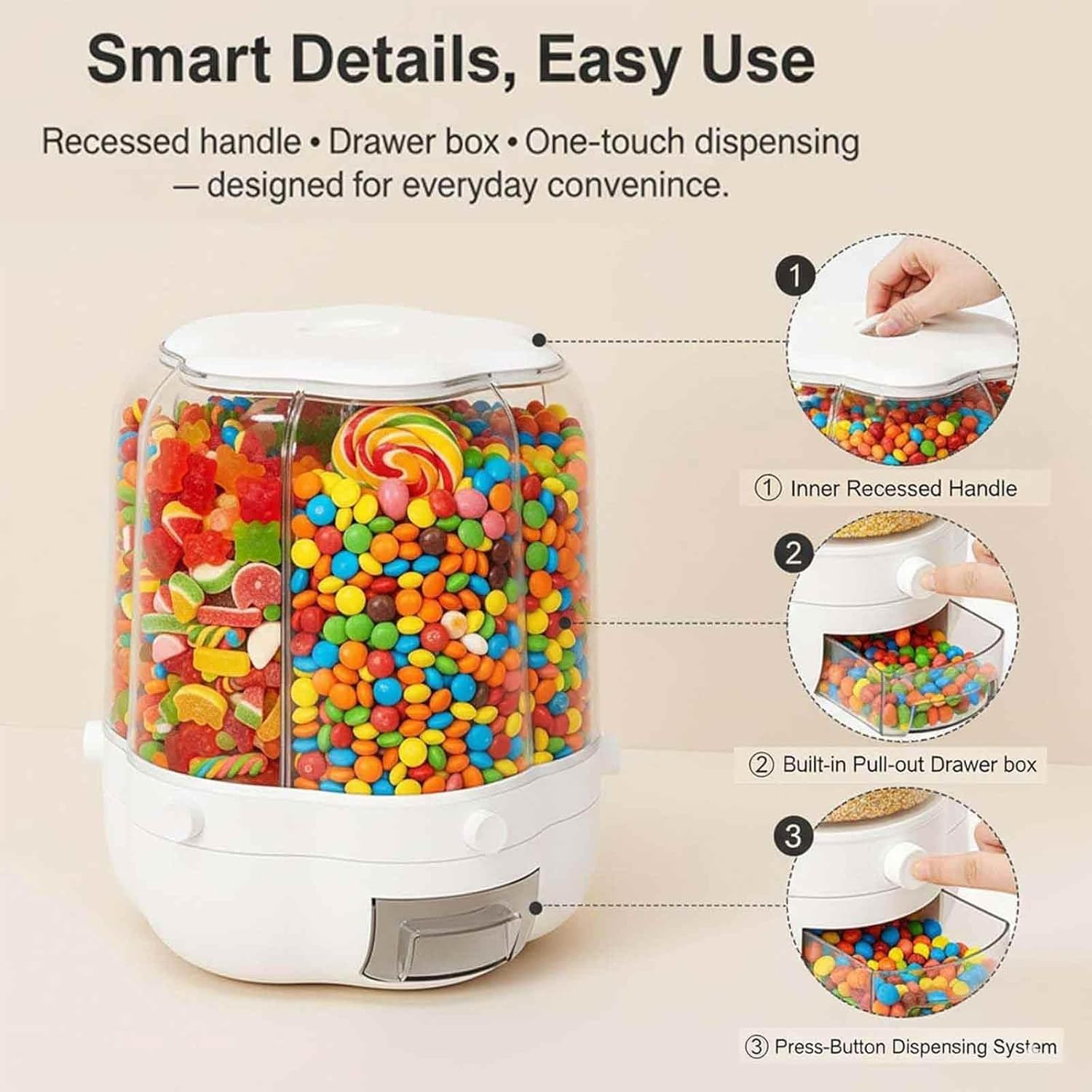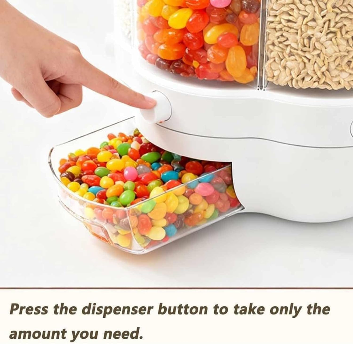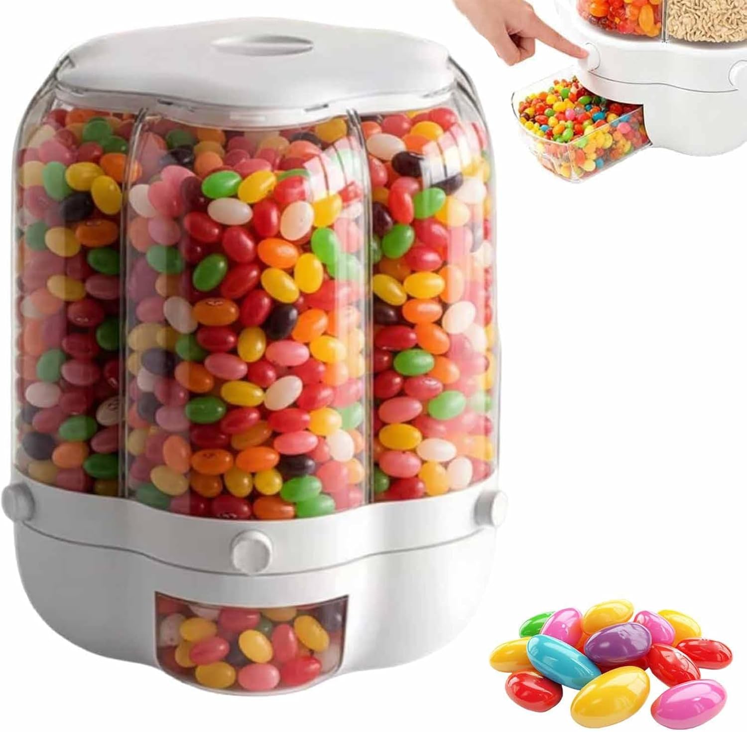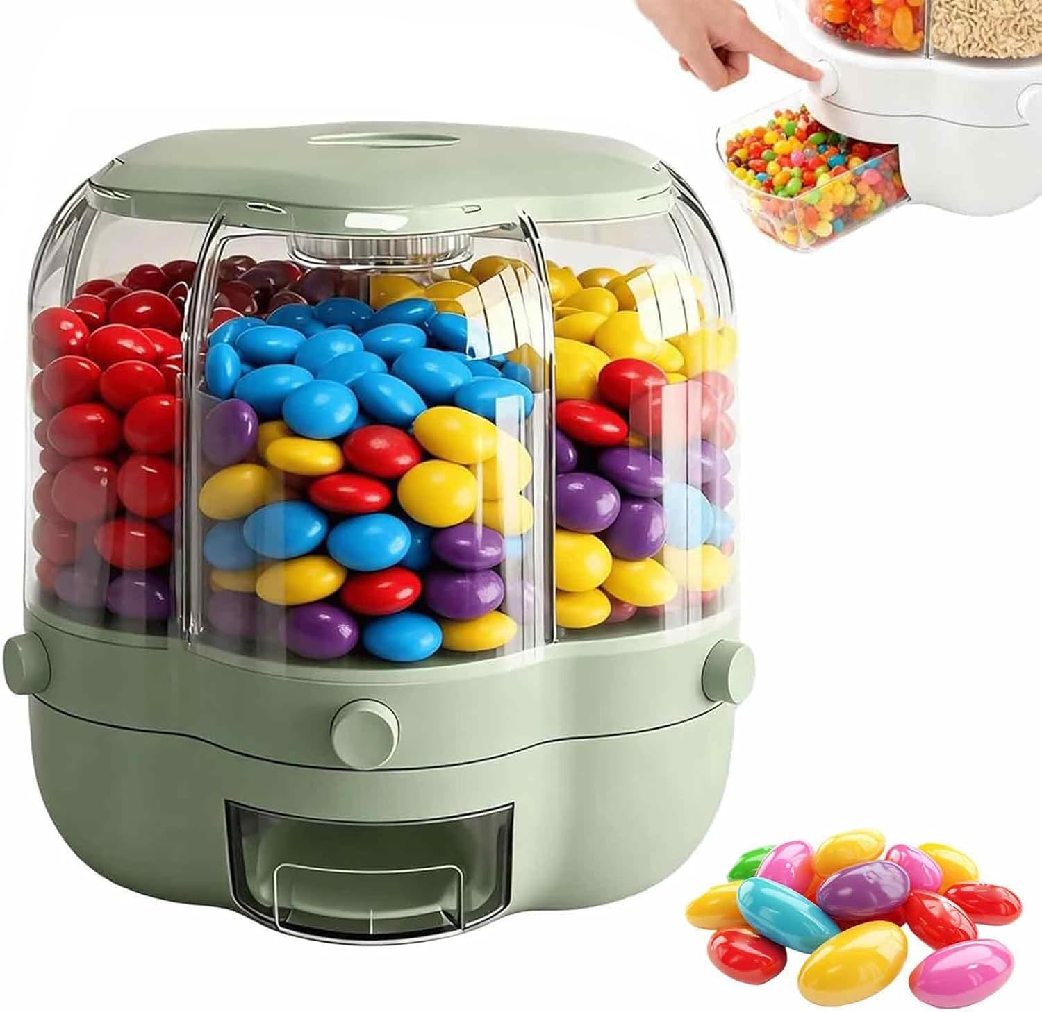 Candy Dispenser Countertop, Rotating Candy Dispenser, Candy Dispenser Multiple Compartments, 360° Rotating 6 Compartments, Fun Press Type Large Capacity Storage BoxSpecifications:Name: Candy DispenserMaterial: ABS+PET+ASColor: White, Green, Dark greenCompartments: 6 rotating sectionsSize:Small: 27*27*26cm/10.6*10.6*10.2inLarge: 27*27*32cm/10.6*10.6*12.6inPackage Includes:1Pcs * Candy DispenserNote:1.Due to manual measurement, please allow a difference of 1-5g/1-2cm.2.Due to different displays and different lighting, the picture may not reflect the actual color of the item. Thank you for your understanding.