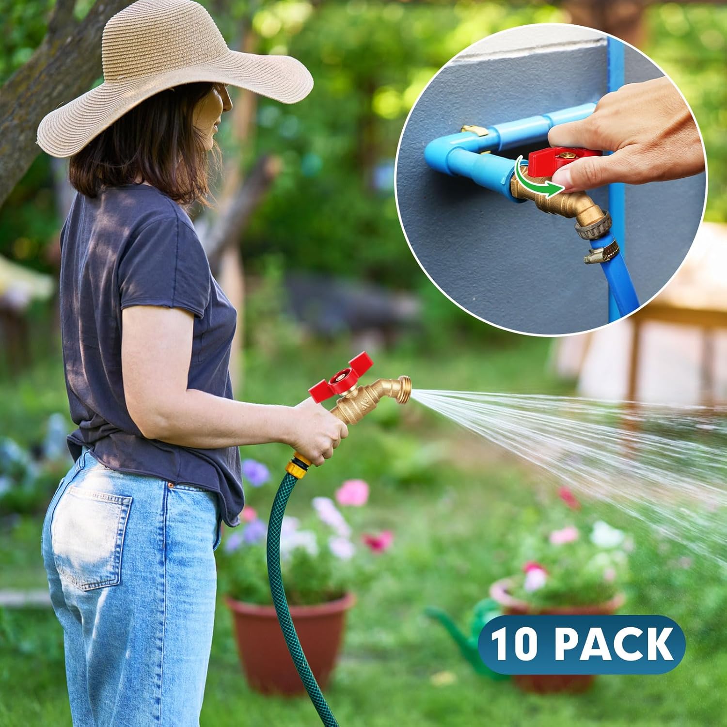 Features: Easy to use: The outdoor faucet body is made of brass and equipped with T handle, which is easier to grip when closing and controlling the water flow. Garden watering helper: Designed for use with outdoor hoses, this 1/4 turn male hose spigot is suitable for your mostly outdoor watering needs. Specifications: Material: brass Color: red Size: Inlet Connection Size: 0.5 Inches Outlet Connection Size: 0.75 Inches Package include: 10 x Male hose bibs Notes: Manual measurement, please allow slight errors on size. The color may exist a slight difference due to different screen displays.