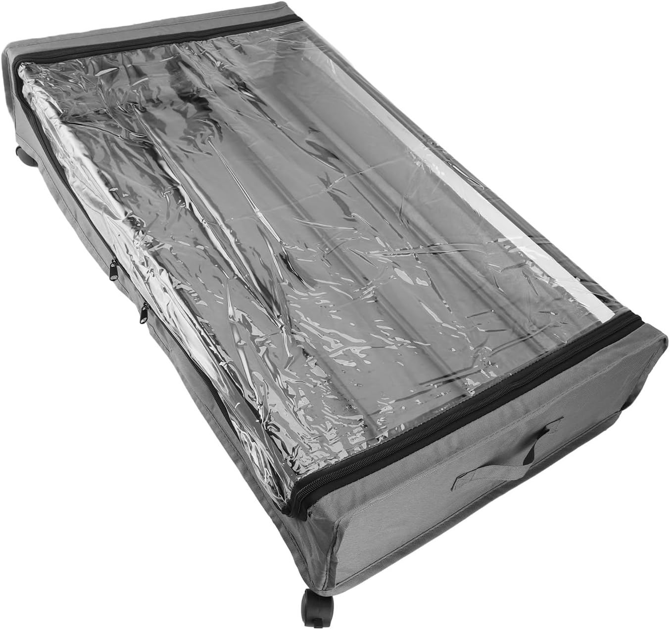 1. LARGE CAPACITY: The under bed storage container has a compact structure but offers spacious storage space. With the size of 80x43.5x16cm, it is perfect for storing bulky items such as winter coats, shoes, clothes and extra bedding. 2. EASY SLIDING: The under bed storage bin comes with four flexible 360° wheels for easy mobility. Includes two lockable wheels for stability. Easily slides under any bed or piece of furniture and the convenient handle makes moving even easier. 3. STRONG CONSTRUCTION: Our under bed rolling drawer combines durability and cleanability. Made with premium sturdy metal frame and easy to fabric, it can withstand heavy loads while keeping items intact. Perfect for long term storage without sacrificing freshness. 4. TRANSPARENT WINDOW: Find what you need quickly with our under bed organizer's transparent window design. The large window provides a clear view and eliminates the need to sift through items. Keep your items and organized. 5. SPACE SAVING: This rolling drawer is not just limited to under bed, it can also be easily slid under the couch or into a dorm closet to create a neat and organized space anywhere. Maximize your space, maximize storage in the smallest space possible. Spec: Item Type: Under Bed Storage Container Material: Carbon Steel, Oxford Cloth, PVC Size: Approx. 80 x 43.5 x 16cm / 31.5 x 17.1 x 6.3in Gross Weight: Approx. 1830g / 4.0lb How to Use: Use after installation. packing list: 2 x Frame 12 x Support Tube 1 x Base Plate 1 x Cloth Cover 12 x Screws 4 x Wheel 1 x Hex Wrench 1 x English Manual Notice: Manual measurement, please allow some errors.